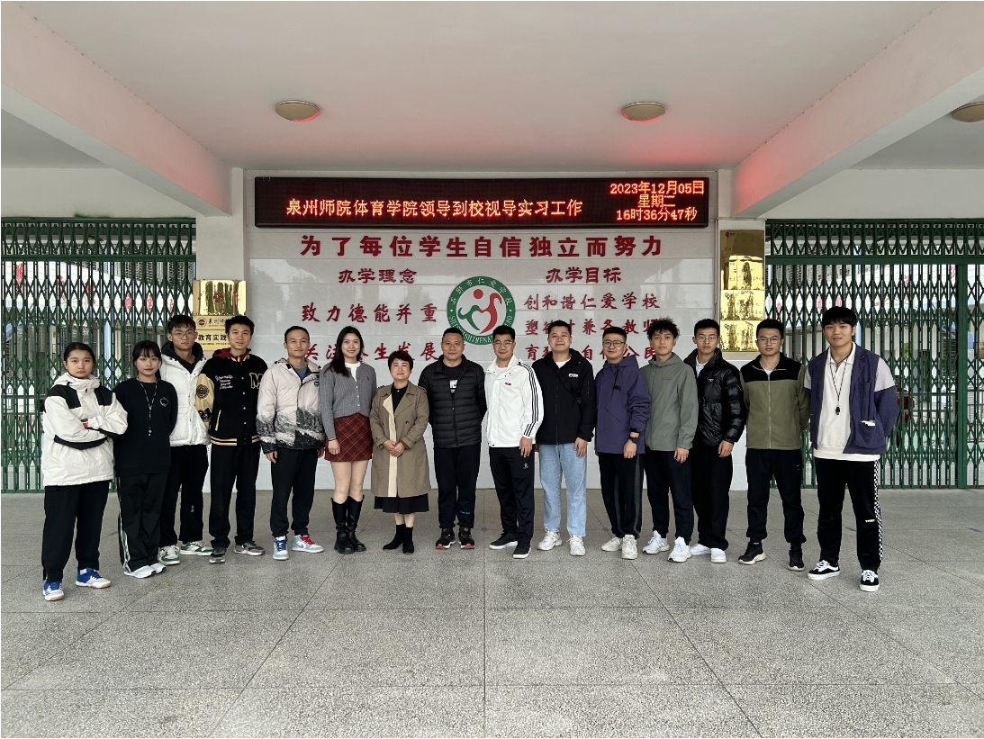 走访中,双方围绕师范生的教育实习实践、校友沟通机制等方面展开深入交流,两个实习单位对我院学生在实习中的表现给予高度评价和充分肯定,希望实习生能珍惜实习机会,感受教学过程,增强自身体育教学的业务能力。同时,我院领导与实习单位、实习学生一起分别进行了座谈交流,学院一行人亲切慰问了在泉州实验中学丰泽附属小学和石狮市仁爱学校实习的学生,鼓励他们要珍惜机会,努力提高自己的专业技能,发扬吃苦耐劳的精神,用爱心、耐心和责任心对待工作。