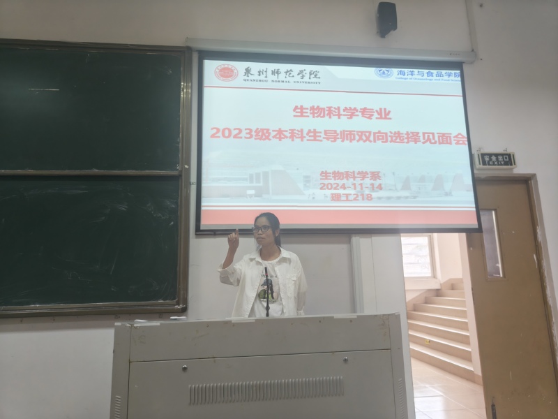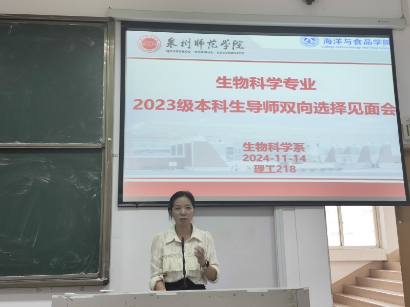为了促进学生与导师互相了解,帮助学生找到合适的研究方向,11月14日,我院生物科学专业于理工218召开了2023级本科生导师双向选择见面会。本次见面会由系主任陈细香老师主持,2023级本科生导师以及2023级生物科学专业全体学生参加。