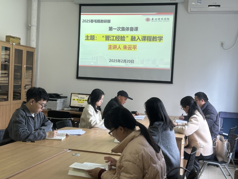 为充分领悟“晋江经验”强大的思想伟力和实践魅力,深入落实马克思主义学院打造“晋江经验”特色大思政课建设,进一步提高“毛泽东思想和中国特色社会主义理论体系概论”课程教学实效,2月20日下午,毛泽东思想和中国特色社会主义理论体系概论教研部举行了2025春季学期的第一次集体备课会。