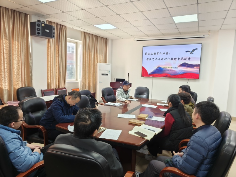 在新时代教育背景下,教师的综合素养不仅体现在教学能力上,更体现在文化底蕴与人格魅力的塑造中。书法作为中国传统文化的精髓,不仅是艺术的表达,更是修身养性、陶冶情操的重要途径。3月20日下午,我院生物科学教研室举办“笔尖上的育人力量”主题研修活动。蒋国芳教授执笔挥毫间,将传统书法艺术与新时代教师素养培育巧妙相融,为全体教师呈现了一场独具匠心的文化盛宴。现场墨香氤氲,笔锋流转,理性严谨的生物科学与灵动深邃的传统艺术在此碰撞交融。