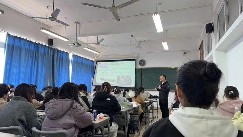 活动首阶段聚焦课堂实践能力提升,开设四场专业核心课程公开课。陈洪彬副教授主讲的《食品贮藏与保鲜》以案例式教学贯穿课堂,结合区域食品产业特色,引导学生剖析食品贮藏技术难点;蒋璇靓老师在《软饮料加工》课程中采用“理论解析+发酵工艺”融合课程知识,深化学生对发酵饮料原理与工艺设计的认知,强化技术转化能力;林娈副教授的《食品化学》课程以“美拉德反应”专题为切入点,运用探究式学习法串联学科前沿与基础理论;郭凤仙副教授的《食品工厂设计与环境保护》课则围绕工艺衡算核心内容,组织学生分组开展食品工厂物料平衡,通过工程计算实践强化学生工程设计能力。每场公开课后,教研室即时组织评课交流,围绕课程思政融入、师生互动设计、高阶性教学目标达成等维度展开深度研讨。