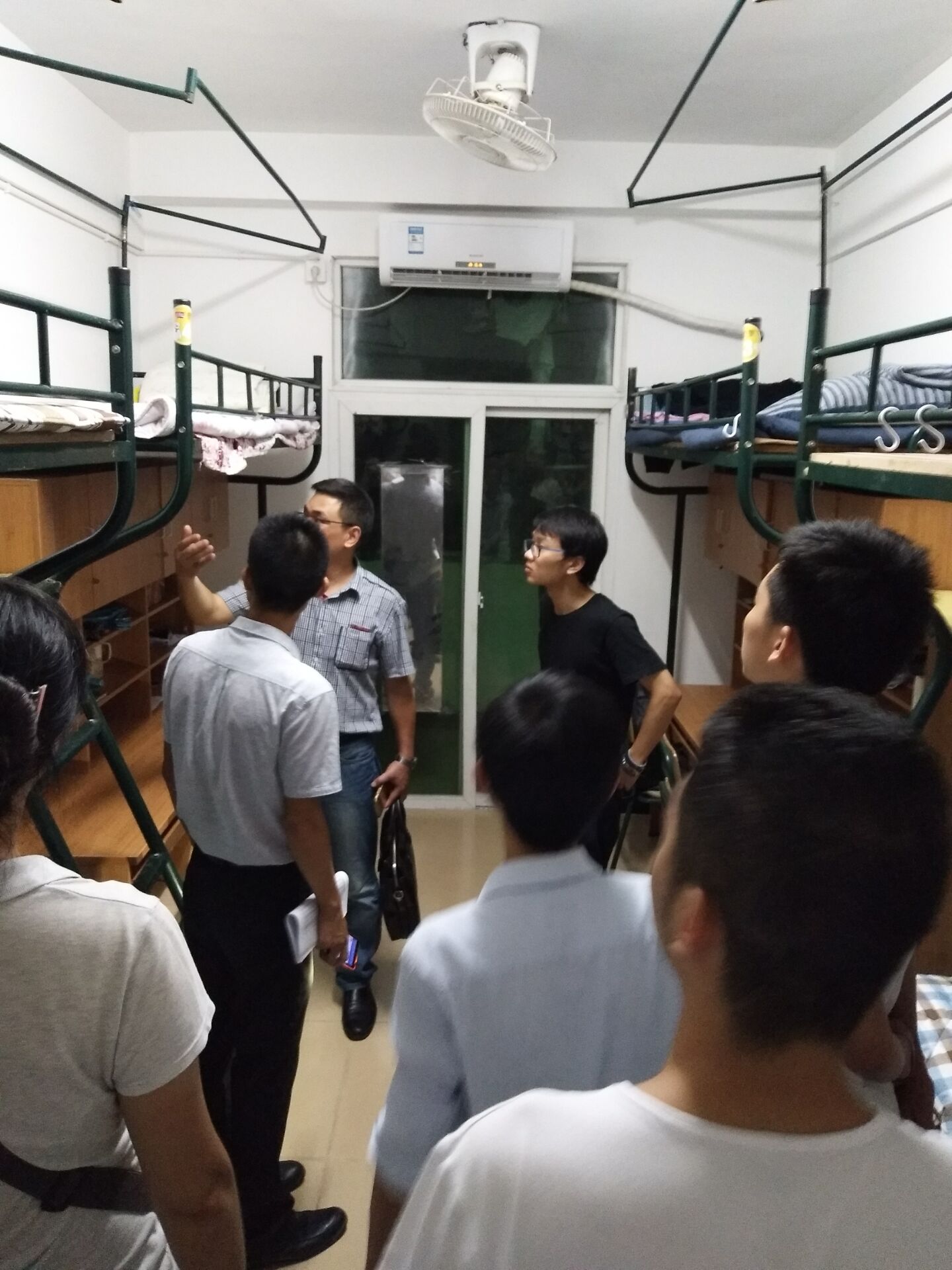 2017年9月10日晚上8点,我院党委书记颜水发、副院长许旭红带领学院全体专业辅导员老师一道走访工商学院学生宿舍。