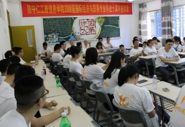 同窗再聚重温四载青春梦,母校回眸畅饮十年岁月情。上午八点左右,校友们陆续回校并来到陈守仁博士铜像旁的报到处报到,领取纪念衫和纪念章,并一一在签名墙上进行签名留念。