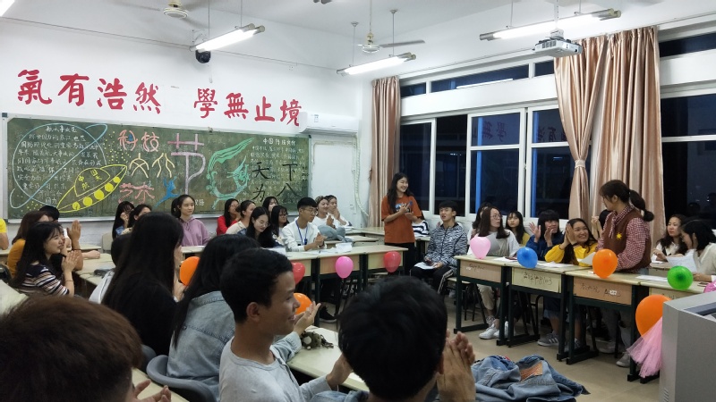 班会上,各班级通过事先整理好的习近平总书记经典语录,用PPT播放视频、展示文字内容,带领同学深入学习新思想的精髓;各班学生通过表演班会节目以及进行游戏互动,活跃班级气氛,展现大学生良好的精神风貌。班会结束之前,各班团支书归纳概括了习近平新时代中国特色社会主义思想的形成与发展过程,并简要说明了其核心内容。