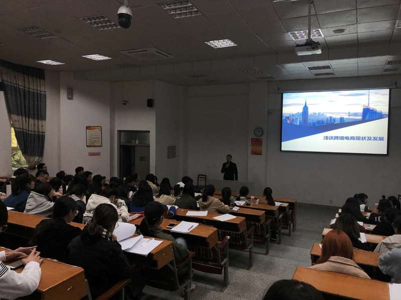 陈景南校友从“跨境电商主流平台”和“跨境电商发展现状与发展趋势”两方面,分享了自己的创业故事。他以自身创业经历,鼓励大家提升创新创业意识,响应“大众创业、万众创新”号召,积极投入创新创业的时代潮流。最后,陈景南校友与同学们进行交流互动。