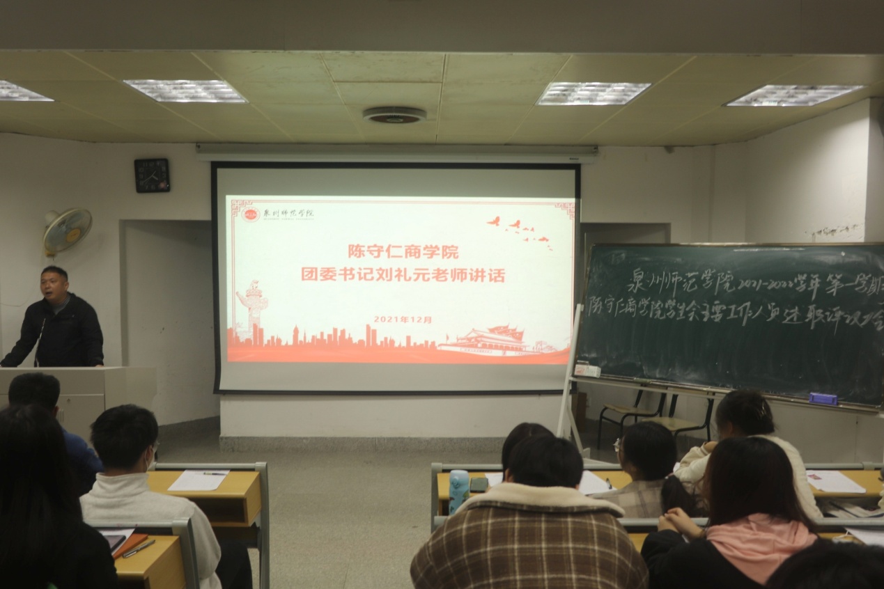 刘咏怡对本学期学生会的工作进行了总结梳理,并就2022年学生会相关事宜进行布置。随后,学生会主席团成员、各部门负责人依次述职,学院团委书记刘礼元老师对本次会议进行总结。刘礼元肯定了学生会在本学期工作取得的成绩,同时指出主席团与部门、部门与部门之间交流不够,部门承担工作的主动性仍需提高等不足,要求在以后的工作中要针对存在的问题,采取有力措施加以解决。