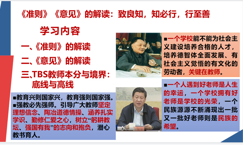 6月15日下午,我院召开师德师风专题教育第二次大会,全体教职工参加了会议。学院党委副书记、常务副院长组织学习并详细解读《新时代高校教师职业行为十项准则》《教育部关于高校教师师德失范行为处理的指导意见》(以下简称《准则》《意见》)等文件精神,并对师德师风的整治工作作了进一步部署安排。他指出,学院将进一步健全长效机制,将师德师风建设纳入常态化管理。开展违反师德师风行为排查,对照《准则》和《意见》,深入排查师德师风存在的突出问题和薄弱环节,强化工作落实主体责任,深化师德师风综合治理。设立举报电话、意见箱,畅通师德师风监督举报渠道,构建学校、教师、家长、学生、社会“五位一体”的师德监督网络。要求全体教职员工要开展自查自纠工作,以实际行动切实推动学师德师风建设,进一步增强为人师表、教书育人的自觉性,合力营造学院充满正能量、积极向上的育人环境。