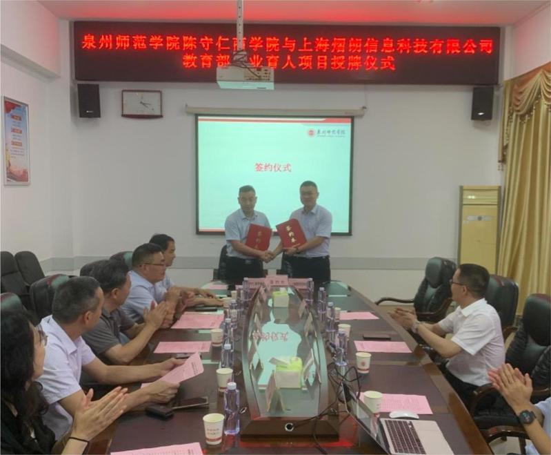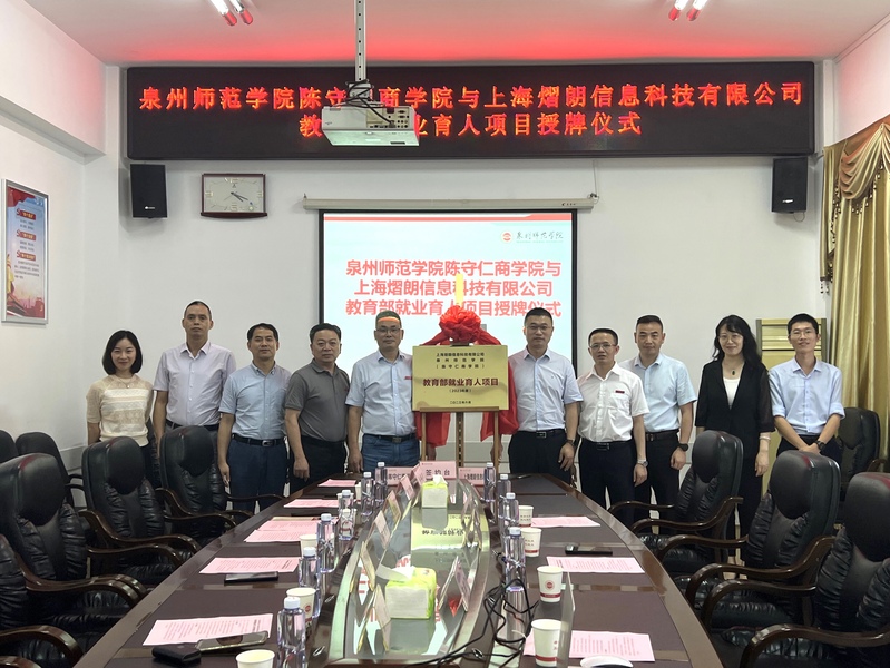 为进一步推动人才培养与就业有机联动、人才供需有效对接,强化就业育人实效,推动毕业生高质量就业,6月15日下午,陈守仁商学院与上海熠朗信息科技有限公司就合作开展教育部就业育人项目举行签约暨揭牌仪式,上海熠朗信息科技有限公司总经理任隐夷、副总经理陈建财,校党委学工部负责人、陈守仁商学院领导班子出席。
