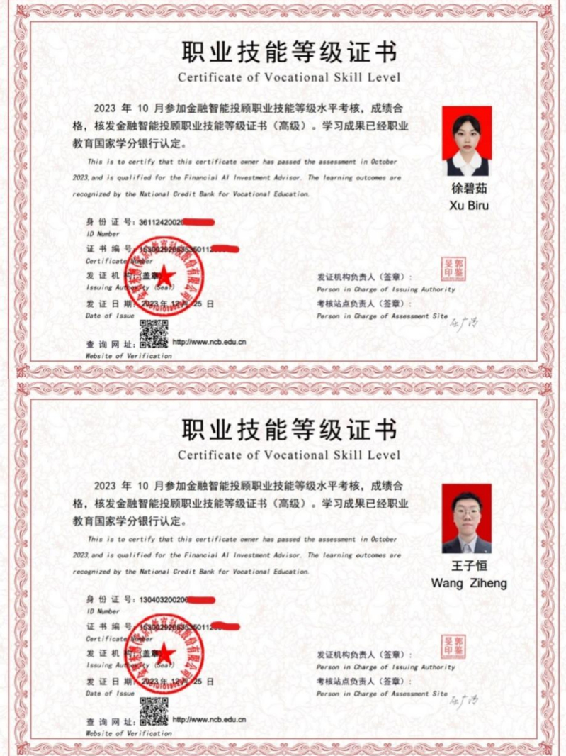 商学院在全国1+X金融智能投顾职业技能高级证书考试中 获佳绩