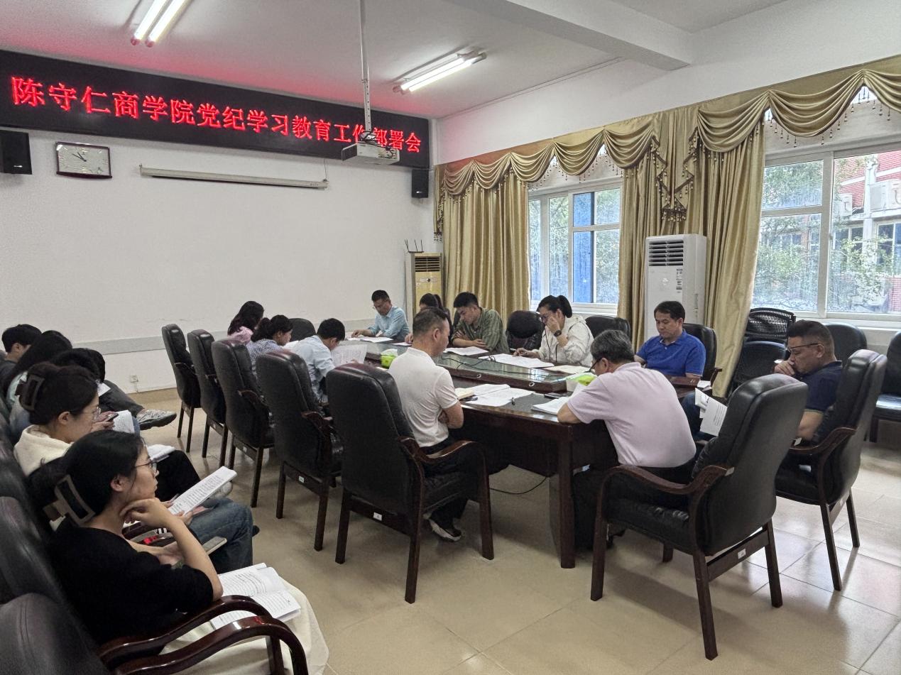 423日,陈守仁商学院召开党纪学习教育工作部署会,传达学习习近平总书记关于党纪学习教育的重要讲话和重要指示精神,贯彻落实中央、省委、校党委有关党纪学习教育部署要求,并就开展学院党纪学习教育作动员部署。院党委委员、三办主任、党支部书记、辅导员参加会议,会议由学院党委书记主持。