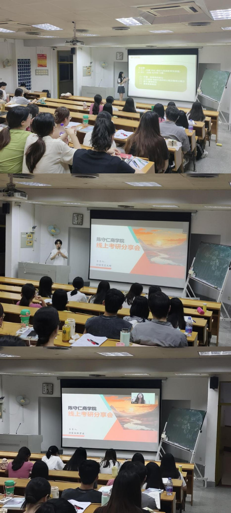 为了加强学生对考研的认识和了解,进一步明确考研规划,挖掘自身潜能,发挥优秀朋辈的引领作用,陈守仁商学院于4月29日晚举行考研经验分享会,邀请五位考研上岸的学长学姐分享备考经验和心得。