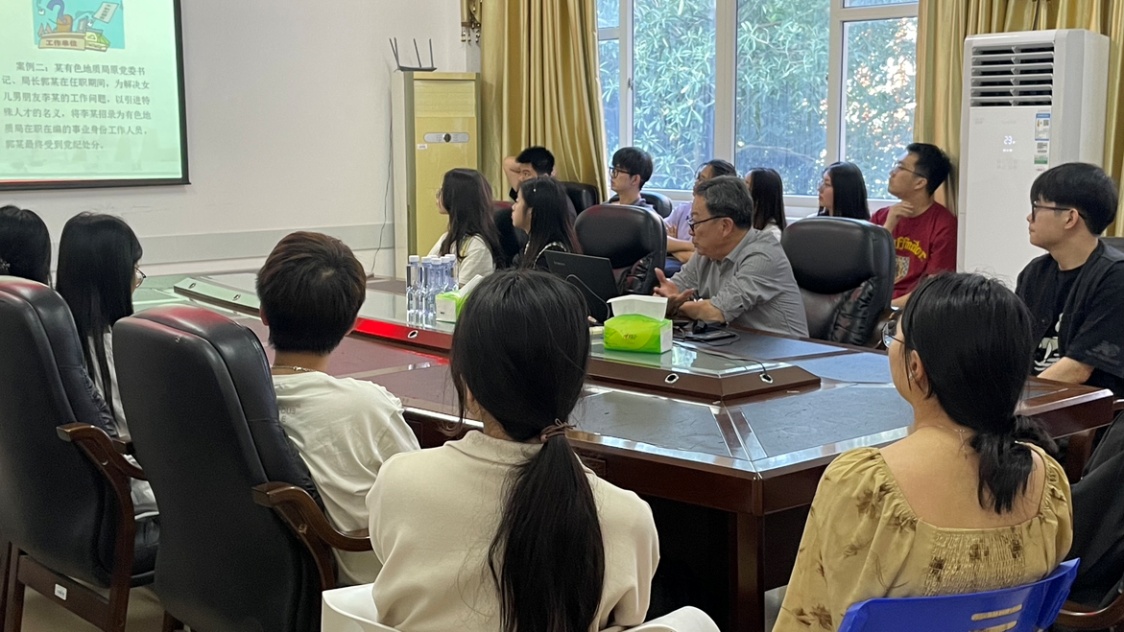 为深入学习贯彻习近平总书记关于党的自我革命重要论述精神,扎实开展党纪学习教育,5月17日下午,学院党委书记胡凌松为毕业班学生党员、学生第二支部党员上题为《学纪 知纪 明纪 守纪》专题党课。