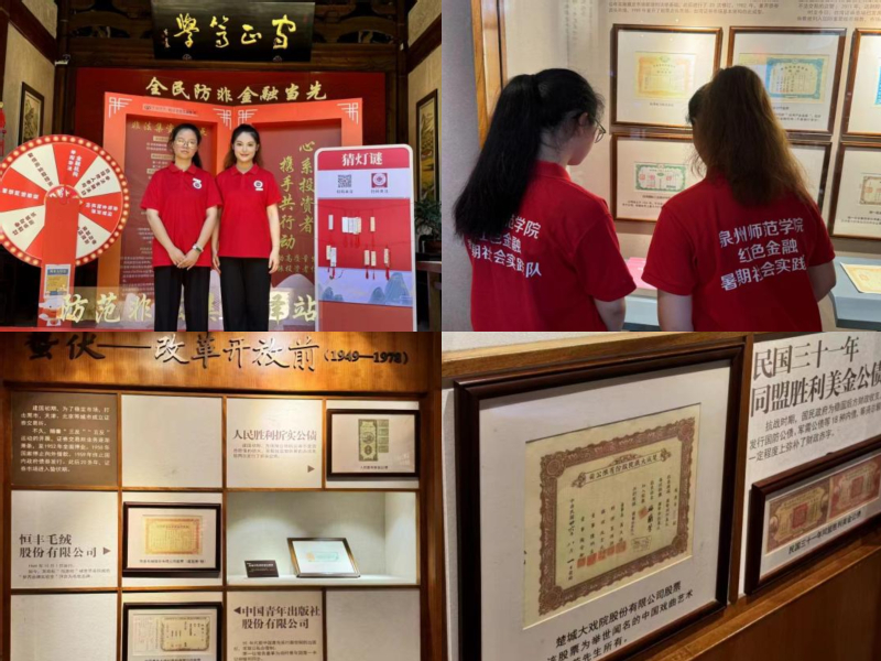 实践队抵达华福证券投资者教育基地——守正学堂,学习并理解金融知识。在基地的证券历史长廊中,队员们仿佛穿越时光隧道,与当时的人们一起经历证券市场的波澜壮阔。探寻证券形式从纸质到电子、实物到数字的蜕变,让实践队队员们感受到红色金融传承的浪漫与意义。除设置证券历史长廊外,基地还研发了小学生金融素养启蒙绘本、联合高校开设金融实训课、组织金融知识竞赛等。通过参观学习,实践队队员们也深刻认识到,金融知识的学习不能只浮于表面,局限于课本之上,而是需要切身地去感受。