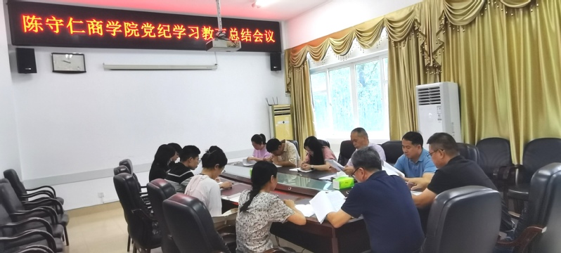 陈守仁商学院930日召开党纪学习教育总结会议。会议传达学习习近平总书记对党纪学习教育作出的重要指示精神,以及中央党的建设工作领导小组会议、省委常委会会议、校党委常委会(扩大)会议精神,总结学院党纪学习教育经验成效,研究部署推进党纪学习教育常态化长效化工作。院领导、党委委员、党支部书记、三办主任参加会议。会议由学院党委书记主持。