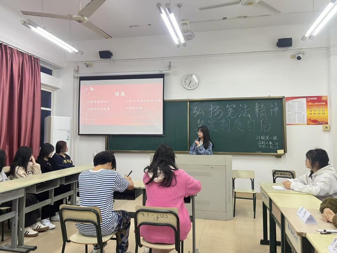 本次活动内容丰富,形式多样。2024级电子商务专业团支部通过案例分析,深入探讨了宪法在日常生活中的应用;2024级国际经济与贸易专业一班团支部举办了宪法知识竞赛,激发了同学们对宪法学习的兴趣;2024级知识产权专业团支部以小组讨论的形式,分享了对宪法精神的理解和感悟。这些活动不仅丰富了学生的法律知识,也增强了他们的法治观念。