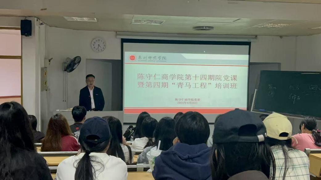 4月24日下午,陈守仁商学院在文科楼 B 栋 313 教室举办第十四期院党课。本次课程由学院党委书记刘显新主讲,学院入党积极分子及第四期“青马工程” 培训班学员参加学习。