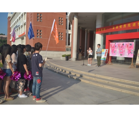 10月13日上午7:30,外国语学院12级学生党支部在俊秀文学院广场举行“‘梦启晨钟’——发挥党员先进性,引领学风树标杆”活动的启动仪式。