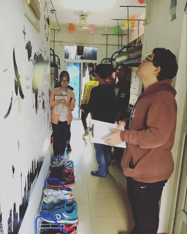 活动过程中,评定小组依次对参赛宿舍进行评比,评比内容包括基本环境、整体氛围、创意、解说词四部分。评审过程中宿舍整齐的内务、精心的装扮赢得了各评委的充分肯定;宿舍成员们积极热情、礼貌大方,利用身边的小物件通过团结协作把自己的宿舍布置的缤纷多彩。