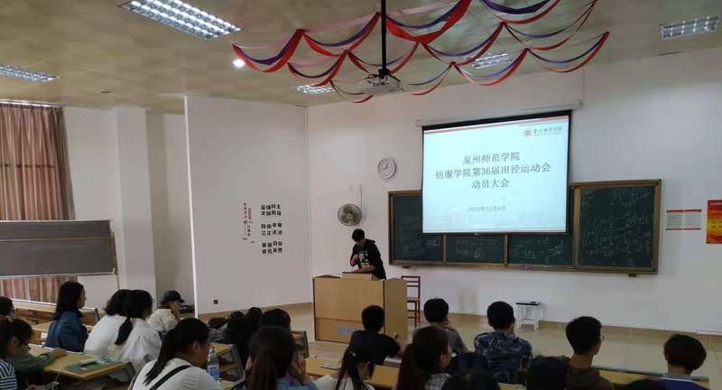 为迎接校第36届田径运动会,鼓舞运动员士气,确保各项工作有序进行,12月4日中午,我院于荣助梯教212召开校运会动员大会。我院学工办副主任聂莹、辅导员谢坤宏、全体运动员参加此次会议。