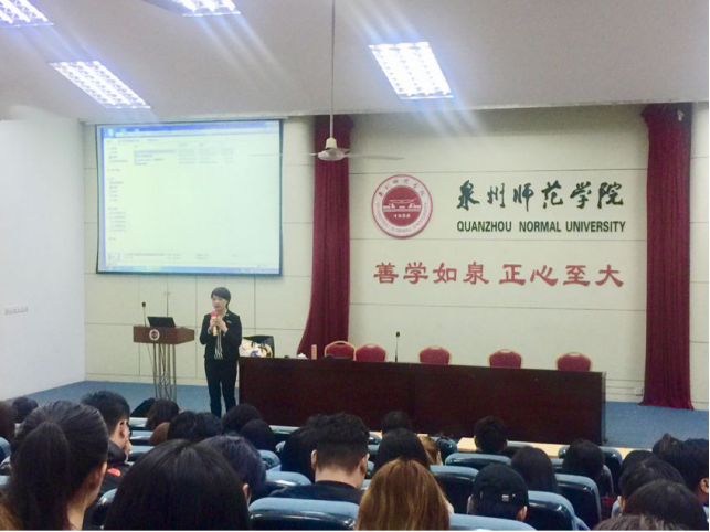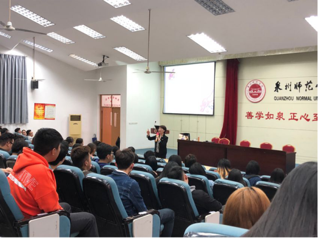 现场,林群老师用一个短片介绍自己的工作和学校。紧接着围绕“教师教什么”“教法与学法的选择”“教师方法”“教学设计与板书设计能力”四个方面详细阐述如何开展课堂教学、如何做好一名用心称职的人民教师。林群老师希望所有同学能够潜心学习,学好专业理论,要发挥教师的人格魅力,细水长流才能得到积累。