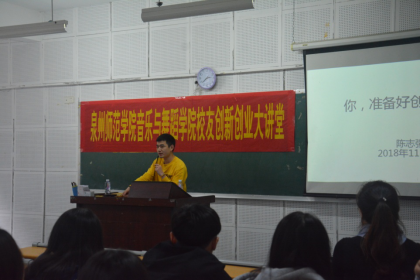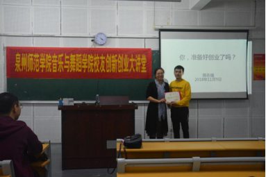2018年11月9日,我院于教室E102开展了“英国威廉希尔公司官网音乐与舞蹈学院校友创新创业大讲堂”的活动。出席本次活动主讲的是我院2017届音乐学毕业生陈志强,陈志强同学为厦门市思明区艺阳天教育培训学校副校长,邀请他出席此次大讲堂的目的是为了提高同学们积极创新的精神,促进开发思维的意识,更好的为发展之路做下铺垫。