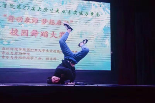 经过了激烈的角逐,来自我院舞蹈学专业的黄幕豪同学以13.71的高分拿下专业组第一名,他高质量的舞蹈技巧展示令人赞叹,得到在场老师们的一致好评;来自物信学院舒大开同学的街舞表演新奇夺目,使得现场氛围高潮迭起,最终以13.499的高分夺得非专业组的第一名。