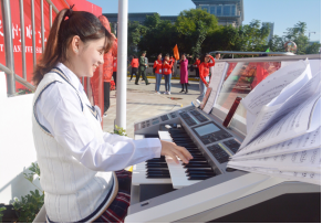 会场外,音舞学子精彩演绎的双排键节目吸引了众多嘉宾驻足观看