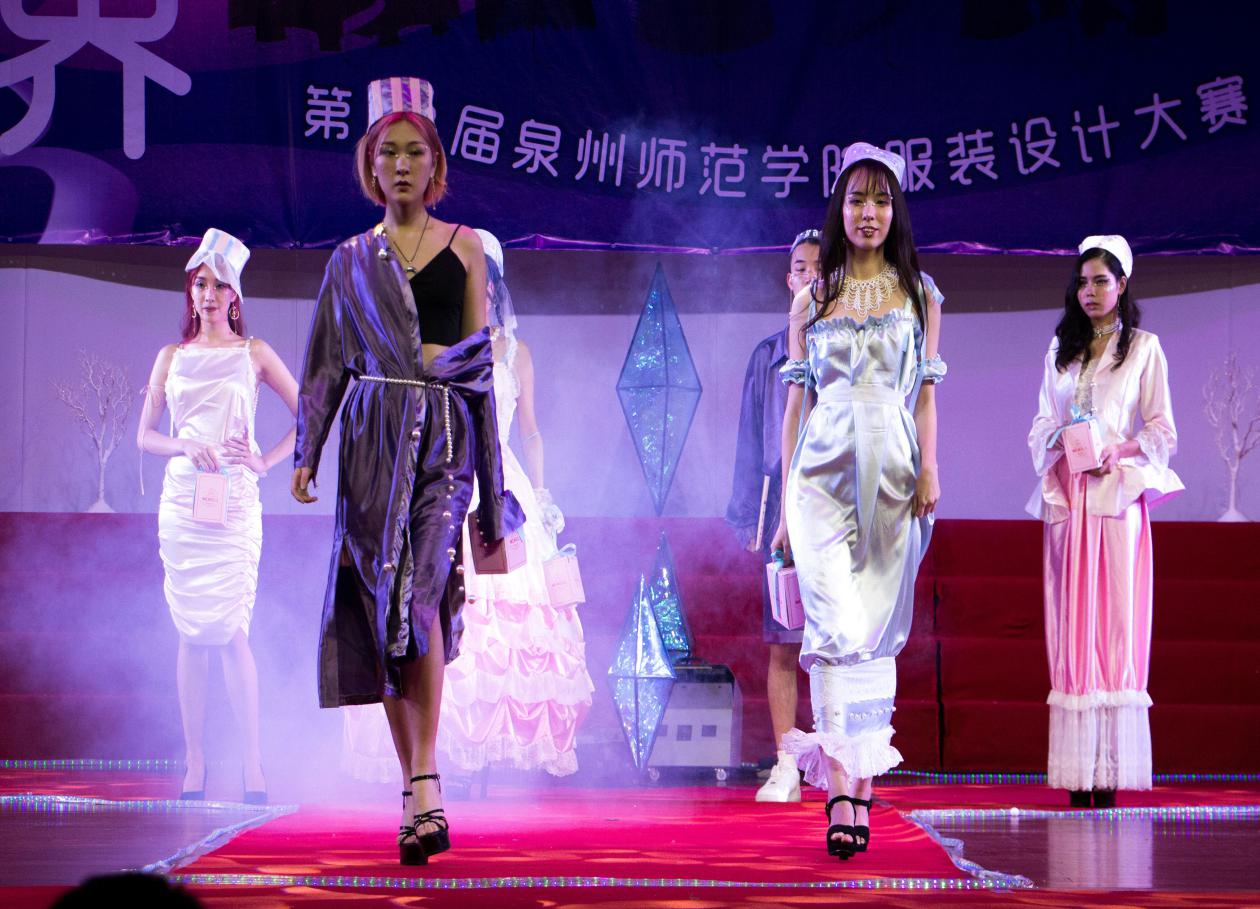 此次大赛以“无界”为主题展开,分设整体搭配、舞台效果、造型设计、工艺制作和走秀评分五个环节综合计分。舞台上,模特们迈着自信优雅的步伐,展现服装款式的精妙设计和色彩的完美搭配,触动着现场每个人的视觉神经。其中,有将孔雀开屏的状态运用于服装的《雀羽霓裳》,以暗黑系列为主的《天生的被谋杀犯》,还有串着搞笑小剧情的《Darkness project》等,都体现无界的天马行空。令人眼前一亮的是由林彩云、郑琪文、吴思敏三位设计师所展示的作品《迟暮》,她们将各种几何形状与颜色进行解构搭配,让形与色完美结合,呈现出令人耳目一新的视觉震撼,最终获得本次大赛金奖。