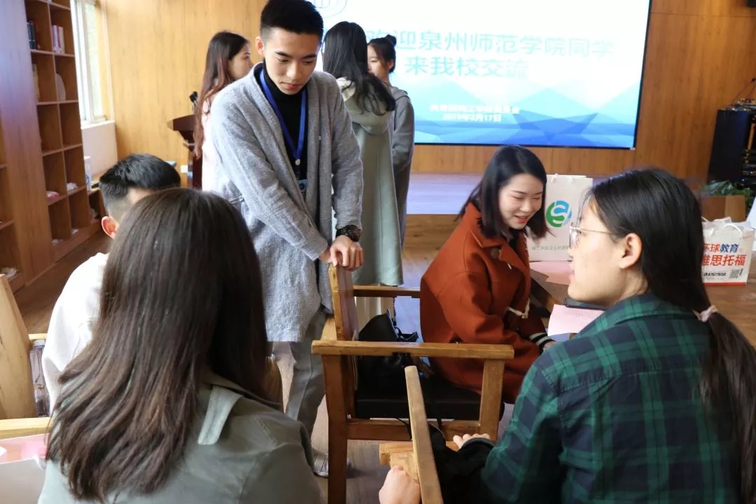 与福州大学的交流会以小组形式展开,按不同部门、不同工作进行,交流主题明确,形式灵活,现场一片火热。