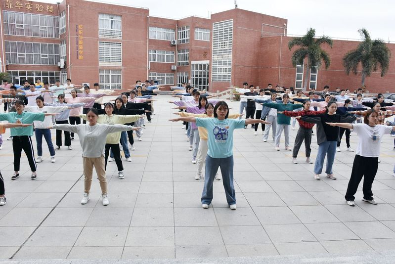 据悉,此次广播体操训练由学院团委会负责。每天早上六点四十分,领操员、督操员和运动员们在邱天生实验楼前集合开展体操训练。运动员们反复地练习动作,用水瓶作为道具辅助训练,保持动作力度;领操员统筹全局,指导队形变换,调整体操队列,耐心讲解动作,力求每个动作整齐划一;督操员穿梭在运动员之间,及时调整错误的动作,力争在运动会上呈现出最好的效果。