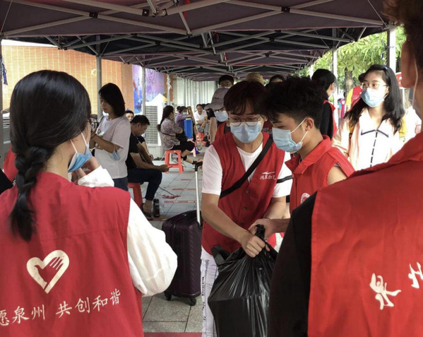 由于常态化疫情防控的特殊时期,今年所有的家长都不能跟随学生入校。为了消除新生和家长们的顾虑和不安,学校组织了近500名志愿者提供暖心入学服务。