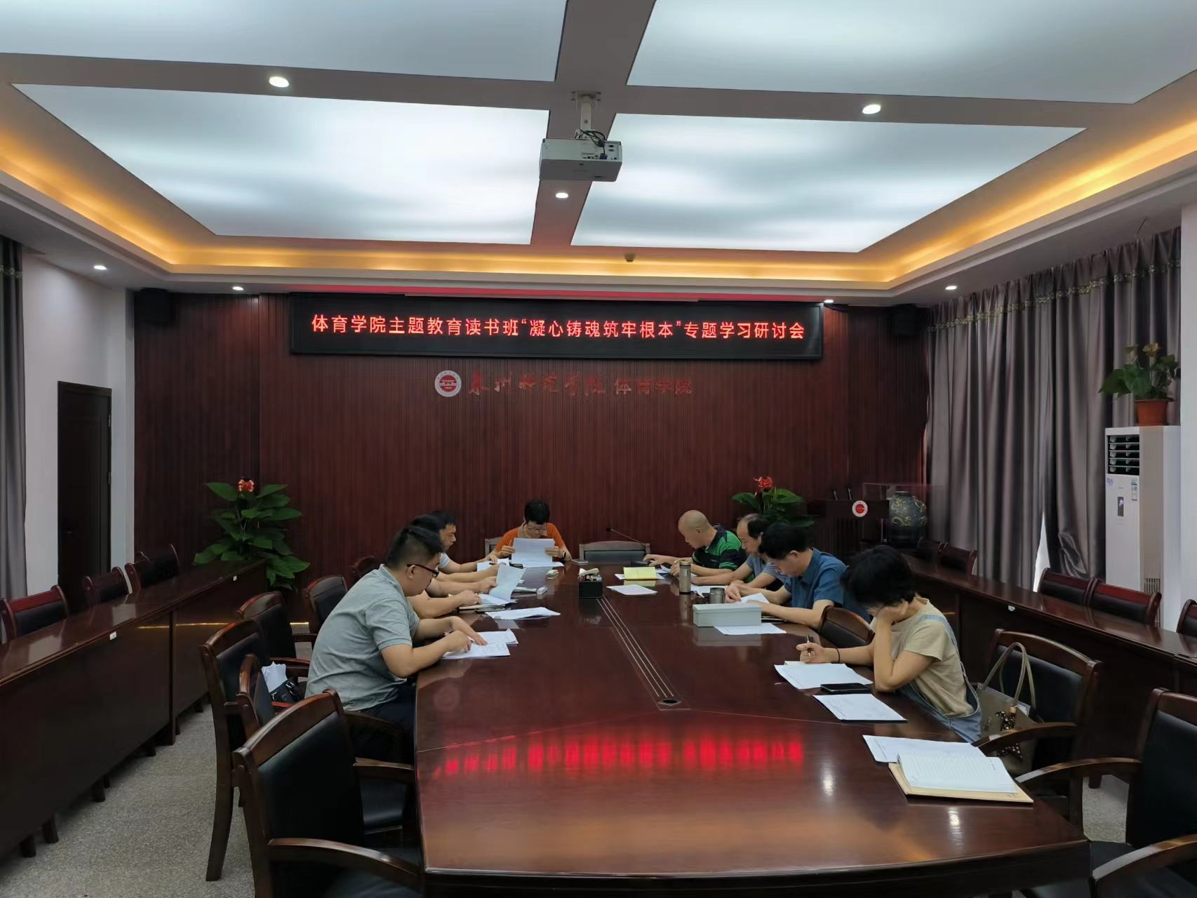 5月22日下午,体育学院主题教育读书班“凝心铸魂筑牢根本”专题学习研讨会在陈伟利体育馆201会议室举行。学院党委班子成员结合个人自学,围绕“凝心铸魂筑牢根本”开展专题学习研讨。院党委正处级干部董清海老师主持并作主题发言,其他党委班子成员作交流发言。