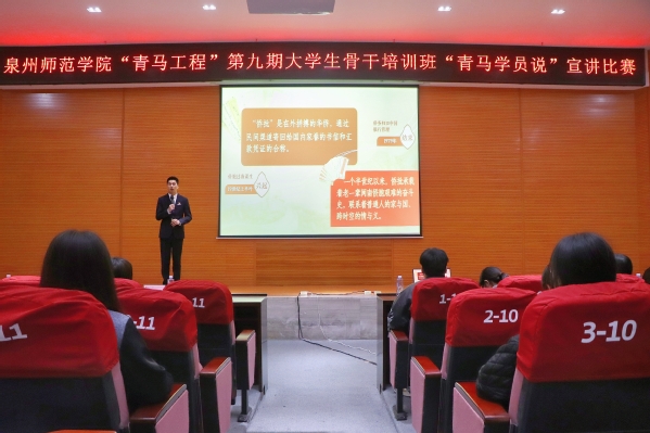 12月3日下午,我校“青马工程”第九期大学生骨干培训班“青马学员说”宣讲比赛在特教第二学术报告厅举行。校团委负责人、青马成长导师、班主任,校第九期青马学员、各二级学院学生代表近200人参加本次活动。