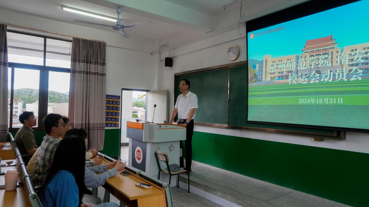 10月31日,学院召开校运会动员会。会议由学院党委副书记(主持工作)肖文清主持,动员会旨在激发全院师生的参与热情,鼓舞运动员的士气。会上,肖书记强调了校运会的重要性,鼓励大家在运动会上积极进取、努力拼搏,展现学院的精神风貌。他指出,校运会不仅是一次体育盛会,更是增强集体凝聚力、提升校园文化的重要机会,同时,肖书记也着重指出运动员要保护好自己,避免运动伤害,确保比赛中的安全和健康。随后,学院团委辅导员洪承隆就校运会有关工作进行了进一步说明。此次动员会为全体参赛队员注入了强大的动力,激励他们在赛场上发扬奋勇拼搏、爱拼会赢的精神,赛出水平、赛出风格!