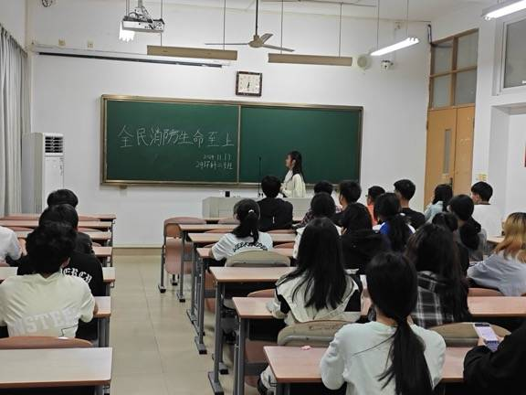 在第33个全国消防日来临之际,我院积极响应消防宣传月活动。为了进一步增强大学生的消防安全意识,提升资环学院学生的安全素养,11月17日晚,我院各班级在理工楼教室召开以“全民消防,生命至上”为主题的班会。