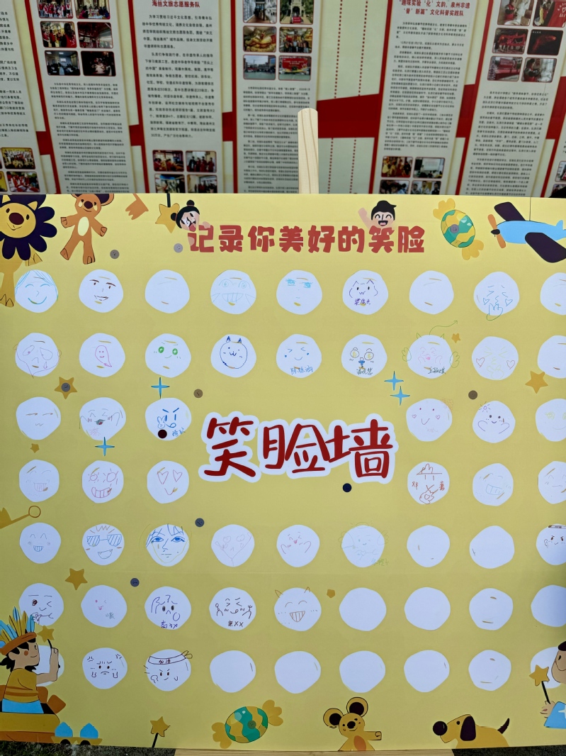 在“共绘笑脸墙”环节,同学们手持画笔与颜料,依次在展示架上描绘心中的笑脸。大家你一笔我一划,有的勾勒弯弯的眼睛,有的涂抹灿烂的嘴角,色彩在展示架上交融,一张张各具特色的笑脸逐渐呈现。有同学表示,“每一笔都承载着大家对生活的热爱,看到这么多笑脸汇聚在一起,内心特别温暖”。
