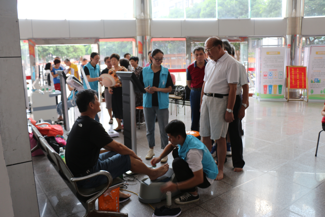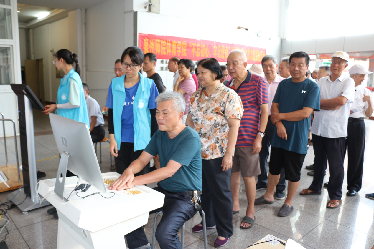 20191013下午,泉州师院体育学院全体师生党员赴泉州老年活动中心开展“不忘初心牢记使命”主题教育党员志愿服务活动。此次活动主要运用体质测试的仪器为退休的师院老教师进行公益测试,并对其进行报告讲解和锻炼指导。