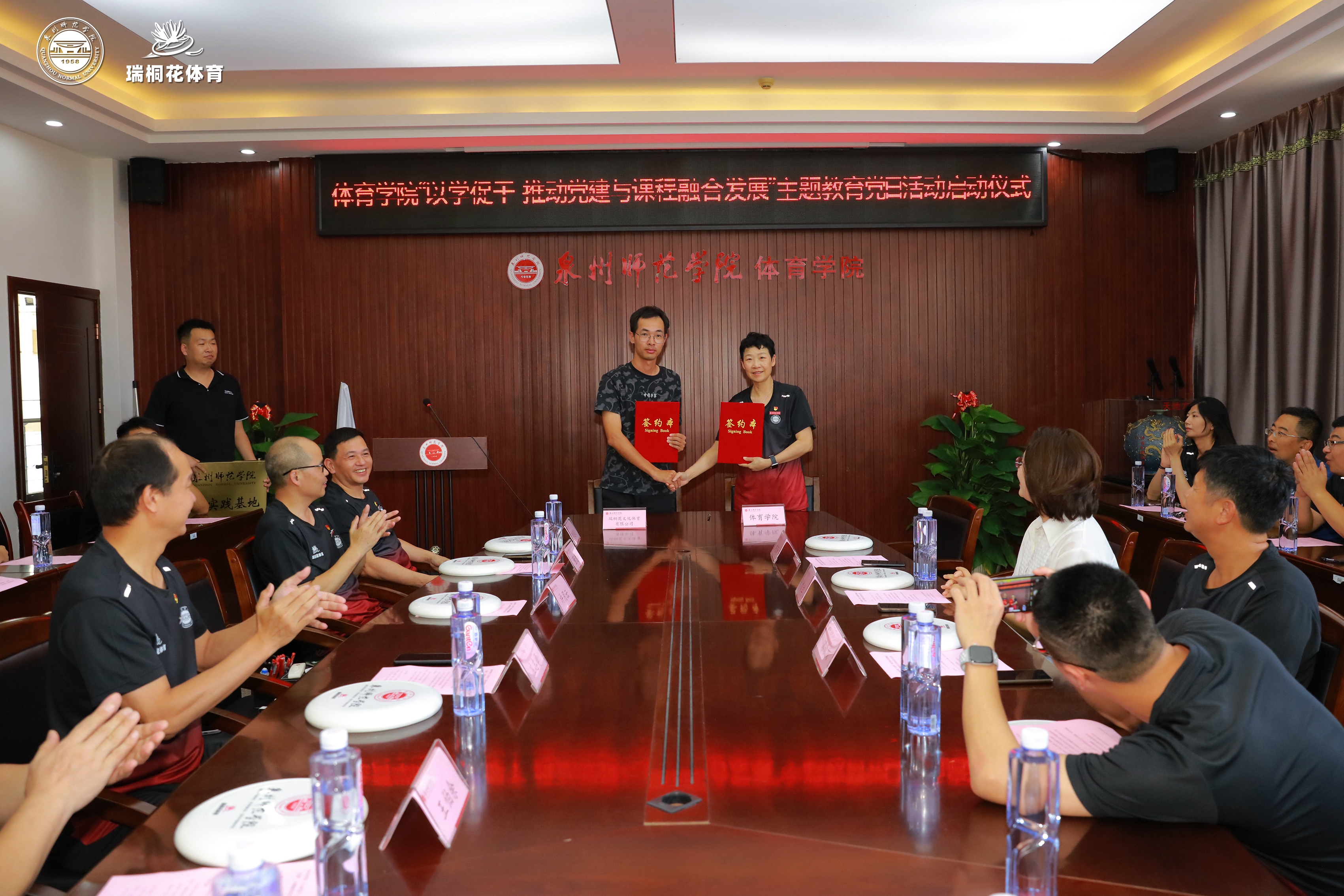 为深入开展学习贯彻习近平新时代中国特色社会主义思想主题教育,加强党建与课程共融共建,落实立德树人根本任务,6月20日下午,体育学院举行“以学促干 推动党建与课程融合发展”主题教育党日活动启动仪式,体育学院班子、教工第二党支部和其他支部的党员教师骨干、瑞桐花体育公司董事长、总经理及教练等相关人员参加了活动。