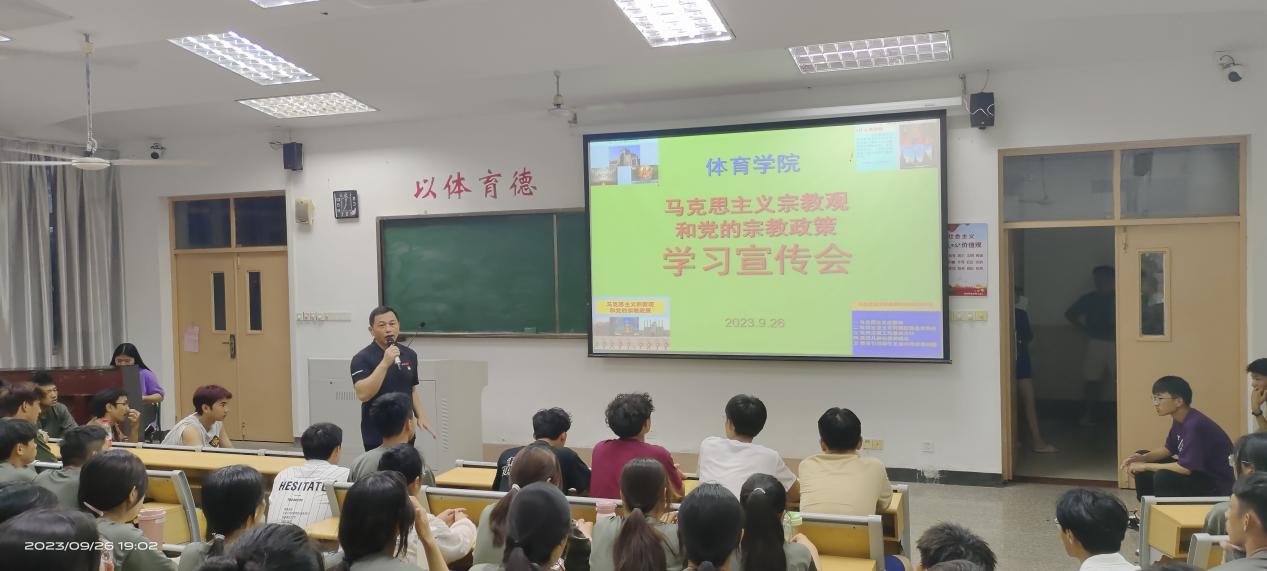 为深入学习贯彻马克思主义宗教观和党的宗教政策规定,引导大学生崇尚科学,树立正确的宗教观,926体育学院党委副书记、纪委书记李遵义为2023级新生开展马克思主义宗教观教育为主题的班会。全体辅导员、2023级全体新生及助班参加此次大会。