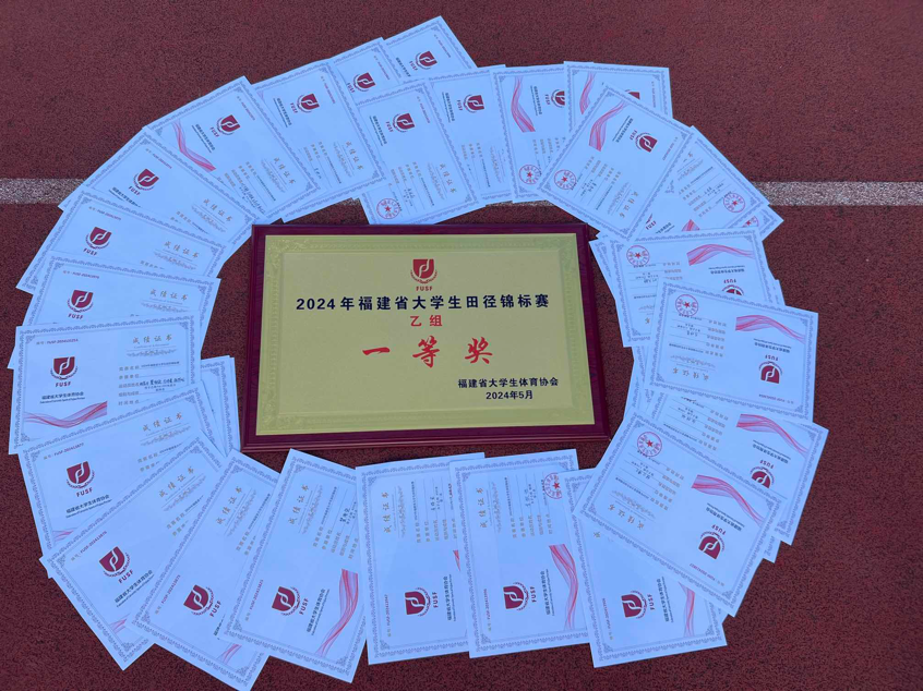 5月22日至27日,2024年福建省大学生田径锦标赛在连城县举办。我校体育学院选派了19名优秀运动员参与比赛,经过三天的激烈角逐,最终获得5金、4银、3铜、团体总分荣获乙组第二名、一等奖的好成绩。