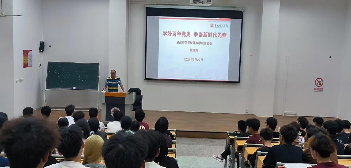 为深入学习贯彻党的二十届三中全会精神,切实肩负起立德树人的根本使命,引导广大青年积极向党组织靠拢,9月25日晚,体育学院党委负责人董清海老师在中山报告厅五楼为全体2024级新生上了一堂以“学好百年党史,争当新时代先锋”为主题的党史学习教育党课。