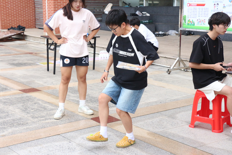 活动现场,心理健康知识展览区吸引了众多目光,主题展板阐释了“5.25”心理健康日的起源与意义,结合体育专业特色深入解读常见心理问题及科学应对方法,同时生动呈现运动对心理健康的促进作用。趣味运动环节则设置了“甩掉焦虑乒乓球”、“翻滚保龄球”、“运瓶盖”和“飞镖大作战”等多个运动打卡点,将心理知识与运动元素巧妙结合。同学们穿梭于各个打卡点,在运动中放松身心、锤炼意志,气氛热烈非凡。