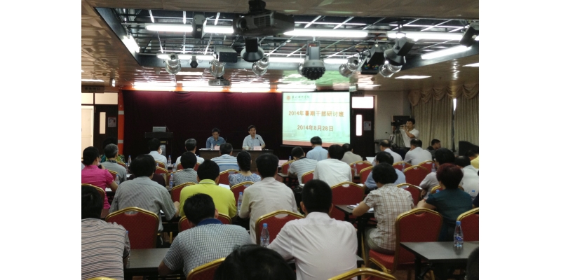 8月28日,学校举办以“贯彻落实全省高校领导干部办学治校能力专题研讨班和全省高等教育综合改革推进会议精神,落实我校第二次党代会部署,加快建设开放型有特色高水平的新型地方大学”为主题的暑期干部研讨班。全体校领导、校长助理、机关各部门(含网络中心、学报、后勤集团)主要负责人,二级学院党政主要负责人,民主党派主要负责人参加了研讨。