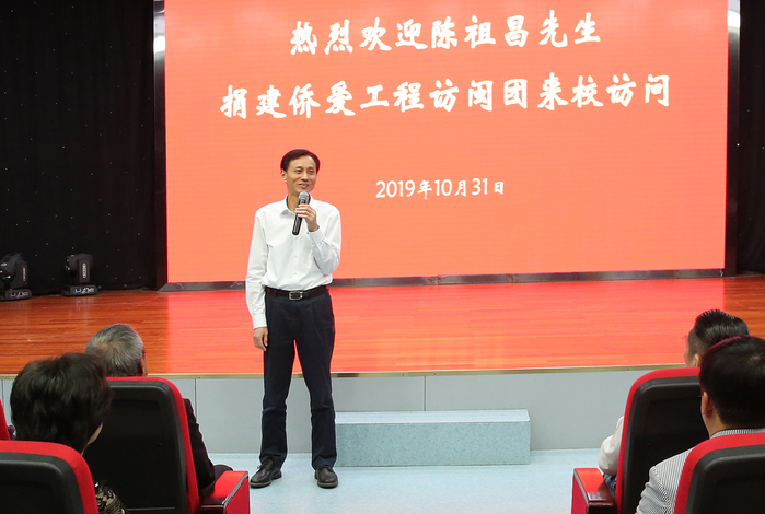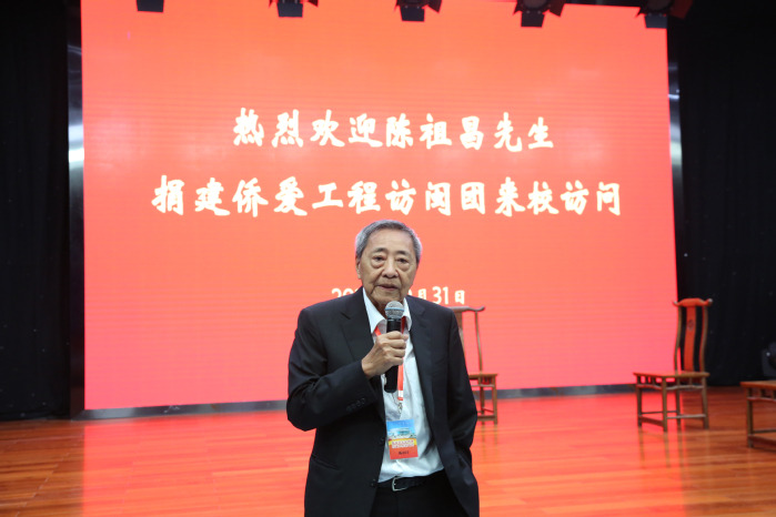 陈祖昌先生回顾了他几十年来热心慈善和教育事业的历程,为学校的发展感到高兴,对我校传承和保护传统文化所作的努力和取得的成绩表示赞赏与肯定,希望将来能有更多的侨亲认识和了解学校,汇聚更多力量一起支持学校的建设与发展。