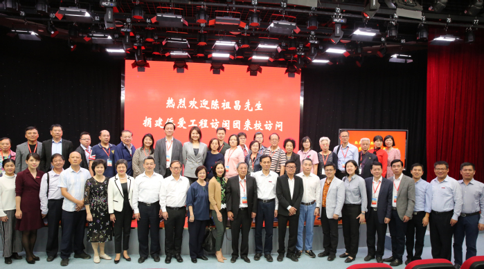 访问期间,陈祖昌先生一行还考察了由其捐资助建的陈明玉钟楼和陈祖昌大礼堂,在文学与传播学院演播厅观看学校宣传视频和欣赏音乐与舞蹈学院学生南音表演。