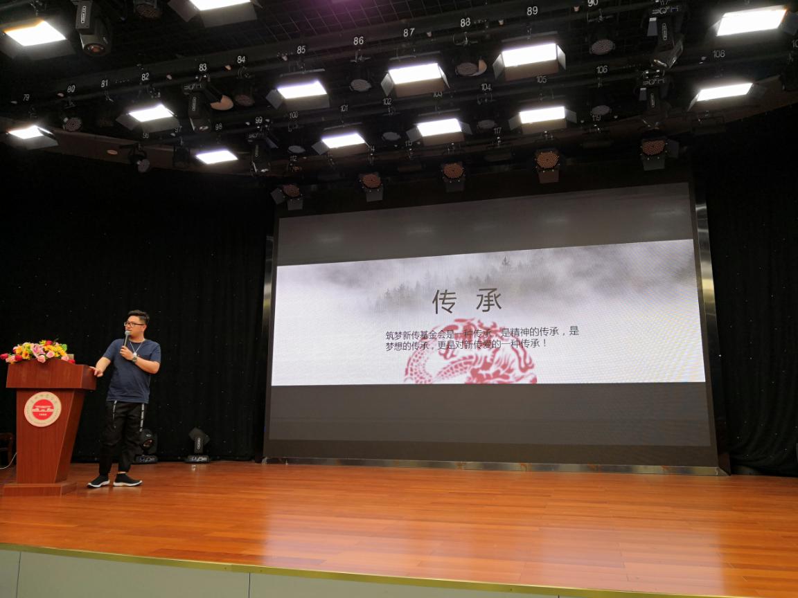 学院校友会副会长、校友代表毛国霖在“筑梦新传”奖学基金的倡议活动环节,做了专题为“感恩·传承·互动”的主题演讲,提出“‘筑梦新传’奖学基金,是精神的传承,是梦想的传承,是新传爱的传承!”