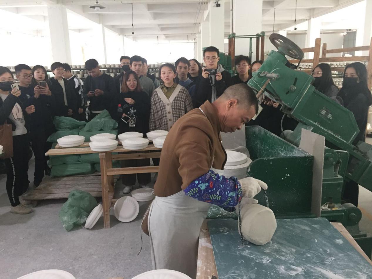 12月9日上午8:00在荣茂楼前统一乘坐大巴前往德化县,当天上午及下午均在顺美陶瓷文化生活馆中考察学习,同学们参观了打瓷土、捏形状、烧瓷具以及用模具制作瓷碗瓷盘等过程,通过解说员的讲解与工人们的现场制作,同学们知道了陶瓷是分为陶和瓷,整个成品的形成过程和工序都有很高的科技和工艺含量,使同学们对于陶瓷工艺制作进行了更加深入的理解。