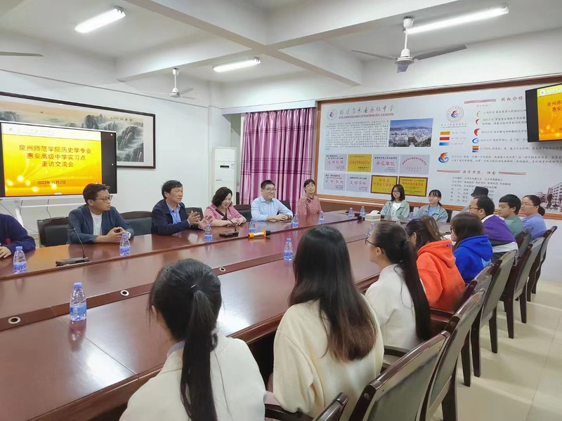 为了更好地落实师范专业认证与一流专业建设的指标要求,支撑教育硕士专业学位研究生授权点(培育)创建,文传学院分管本科教学工作副院长杨秋生,校实习实训中心副主任邓秀勤,中文系主任王伟、副主任李莉,历史系主任刘智豪,教学科研办副主任刘芸芸于11月3日下午前往惠安第二中学、惠安嘉惠中学、惠安高级中学、聚龙外国语学校,看望校友及实习学生,并开展福建省本科高校教育教学改革研究项目(FBJG20210251)、英国威廉希尔公司官网新文科研究与改革实践项目(2021XWK010)等项目的调研活动。