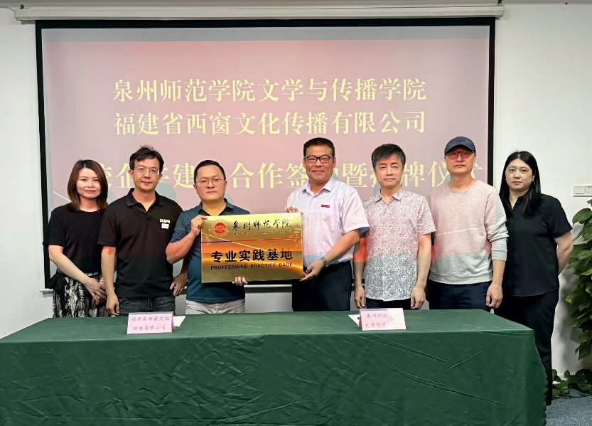 4月29日,文传学院院长王勇卫教授、新闻传播系主任张灿荣教授带领相关专业教师到福建省西窗文化传播有限公司进行访企拓岗考察,并举行实践基地签约及授牌仪式。