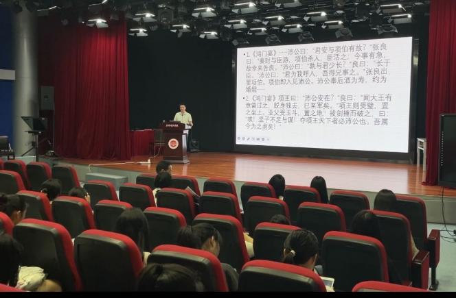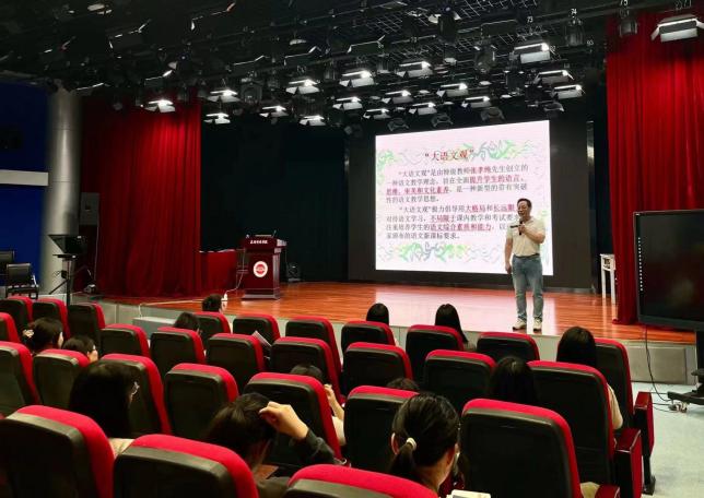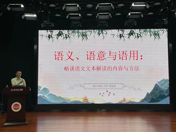 在题为《语义、语意与语用:略谈文本解读的内容与方法》的讲座中,胡先锋老师结合统编教材具体文本,从“借助语典做好语义训释,立足文本内外语境理解语意,面向学生阐释作家语用观念及语用方法”等方面,阐述“学生主体、教师主导、训练主线”的“三主”范式,并希望在场师生要重视培养文本解读能力。